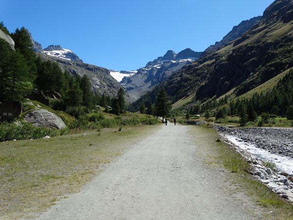 Über einen komfortablen Bergweg, der sich zunächst sanft ansteigend dahinzieht und später in zahlreichen Serpentinen an Höhe gewinnt, steigen wir gemütlich auf. Mit jedem Meter lichtet sich der Wald, und der Blick öffnet sich weit über das Valsavarenche. Vorbei an einem idyllischen Wasserfall setzen wir unseren Weg fort und gewinnen weiter an Höhe. Bald zeigen sich die vergletscherten Flanken des Ciarforon sowie die markante Pyramide der Becca di Monciair, die das hochalpine Gelände ankündigen. Zum Abschluss führt der Weg über ein Trümmerfeld, bevor wir schliesslich das Rifugio Vittorio Emanuele II 2732 m erreichen. (Gehzeit ca. 2,5 Stunden und knapp 800 Höhenmeter.)