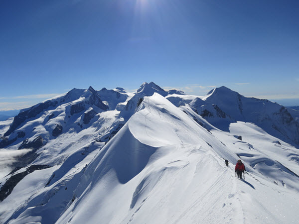 Wir traversieren den Pollux und das Breithorn und geniessen eine wunderschöne Tour. Gleich 6 4000er werden an diesem Wochenende überquert.